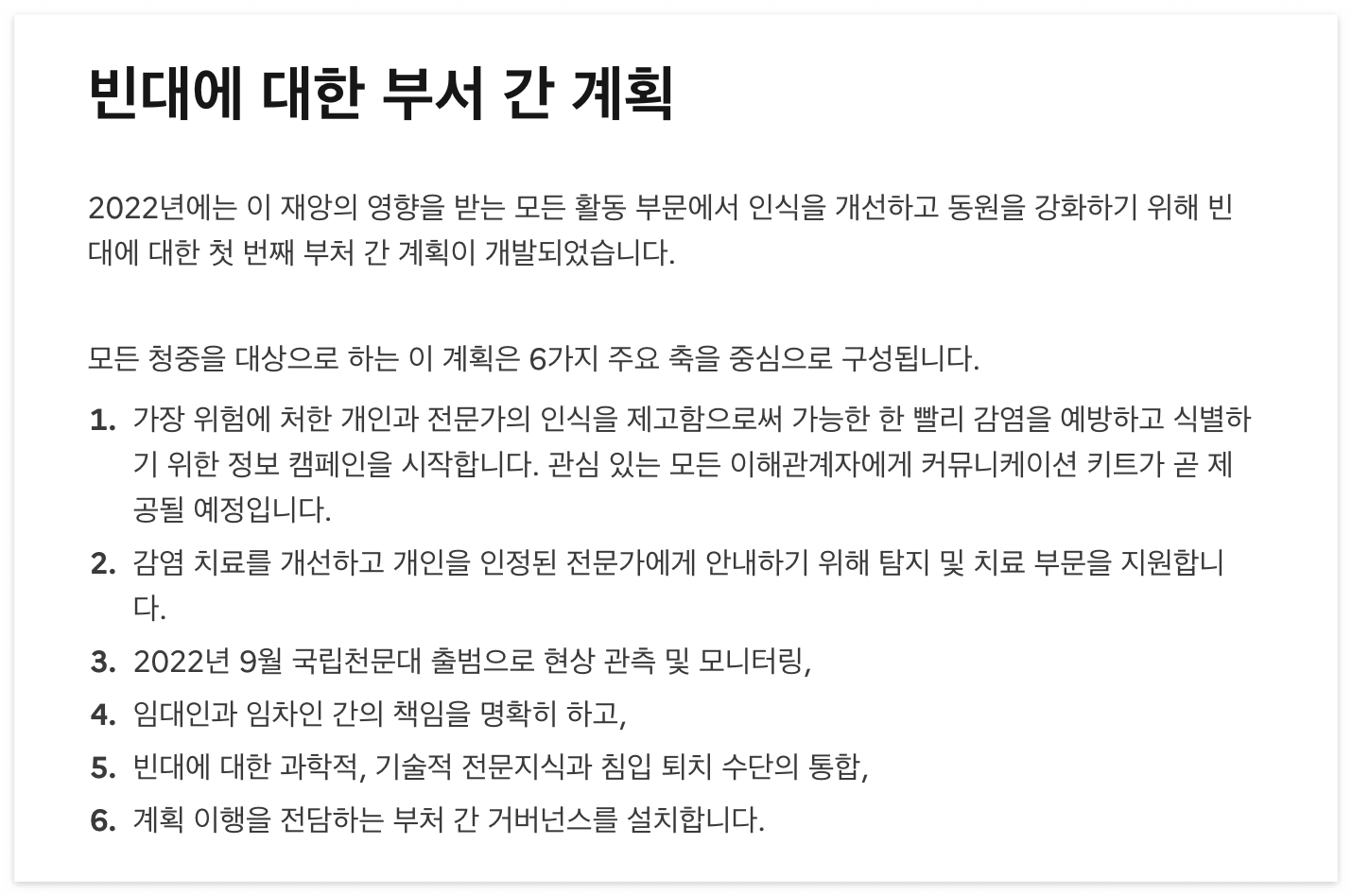 빈대 문제에 대한 대책 마련을 미루지 말고,