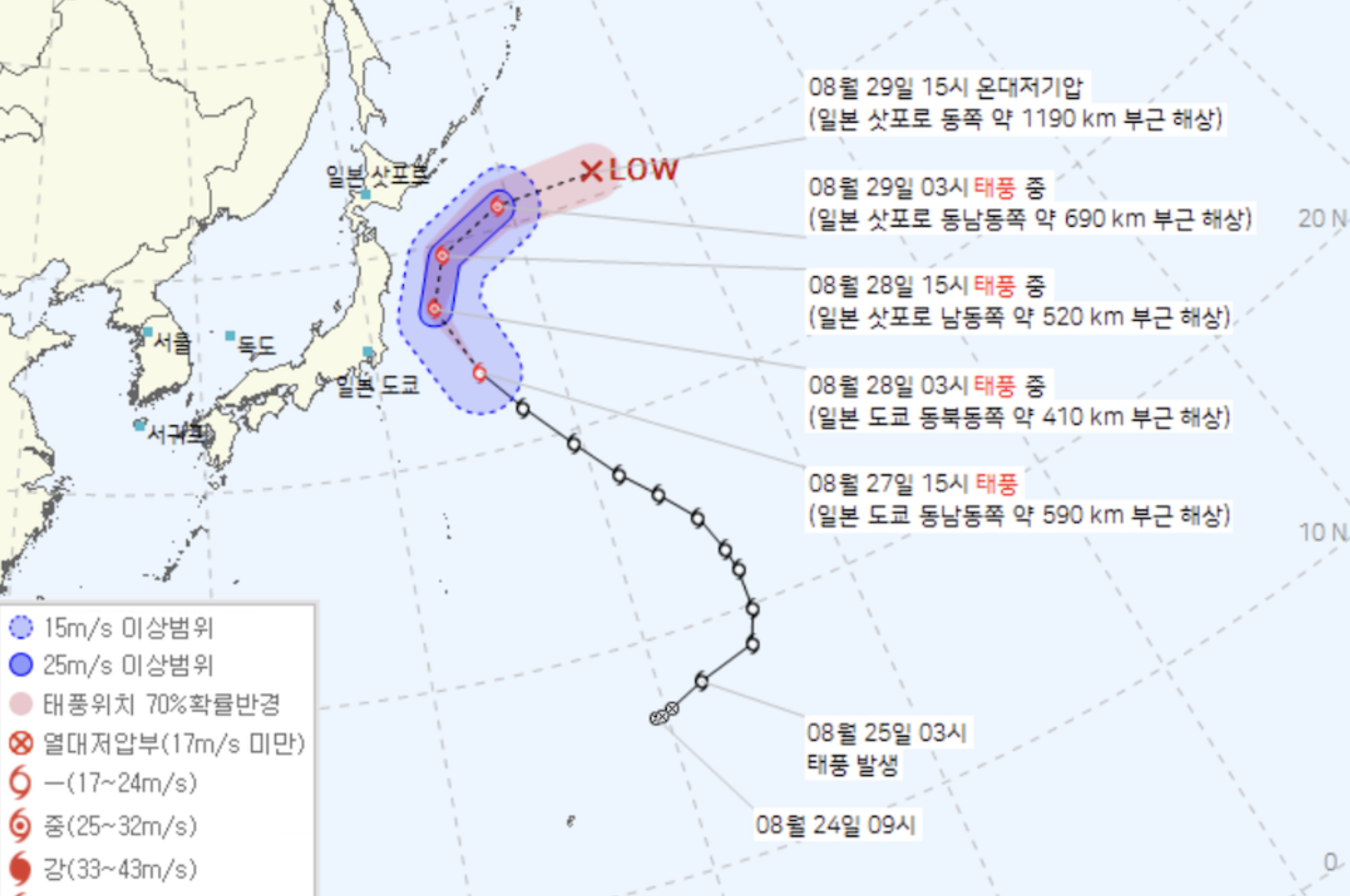 28일 도쿄쪽 해상을 지나 홋카이도에서 소멸할 예정이라고 하니