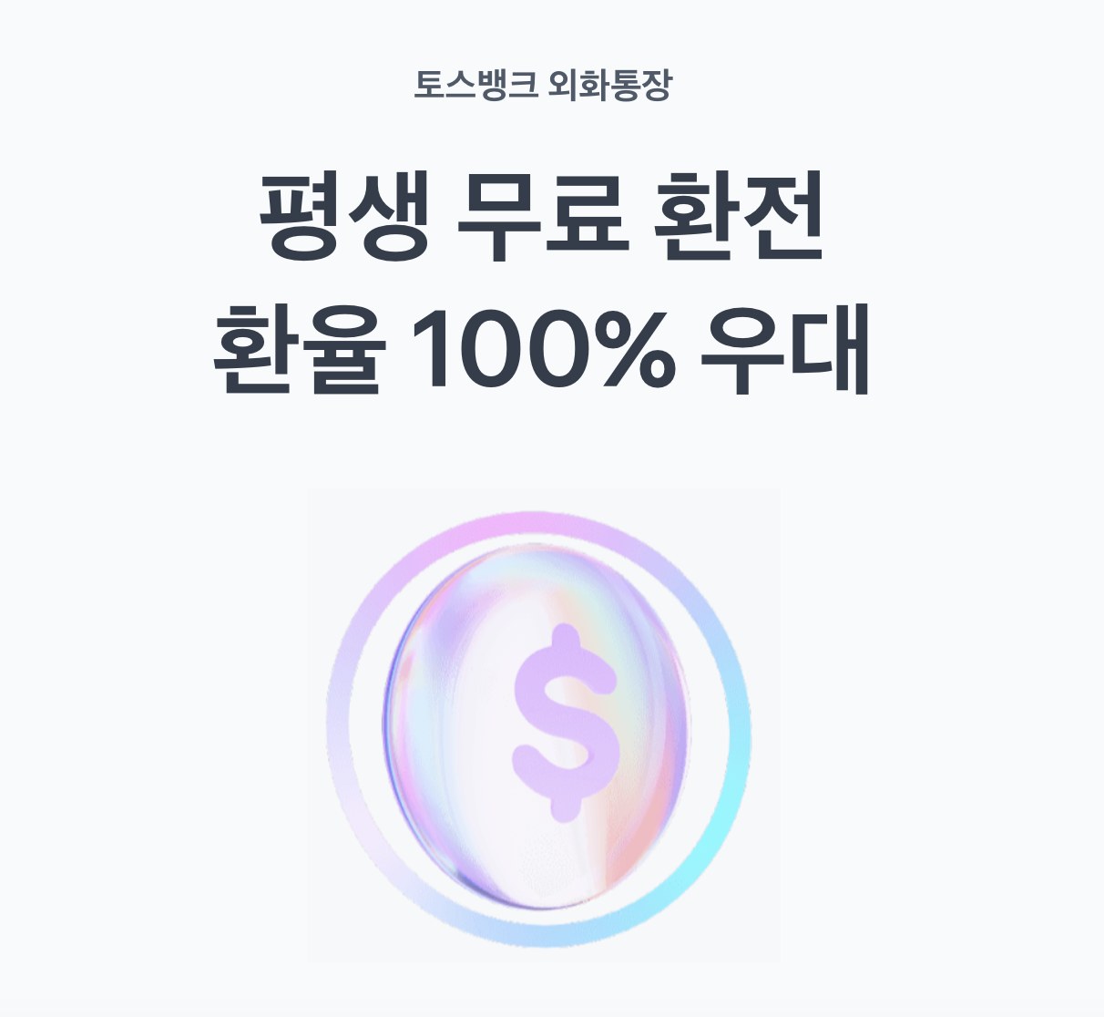 토스뱅크 외화통장은 환율우대 100%를 적용하여, 어느 은행의 환전 수수료가 저렴한지 찾아볼 필요가 없습니다.